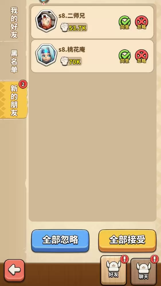 4、在“新的朋友”选项可以处理其他玩家的请求信息