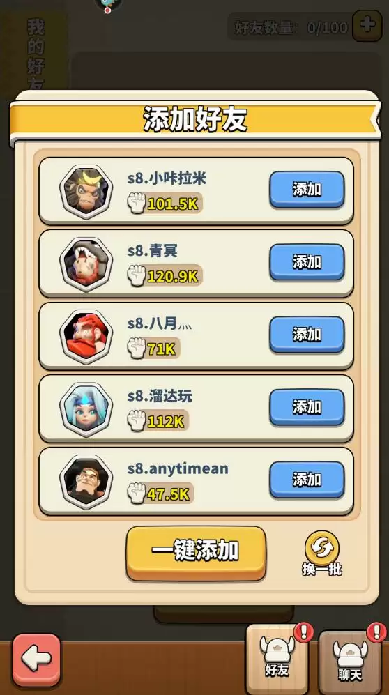 冲啊原始人是以卡牌养成、策略搭配为核心玩法的手游,同时还融合了轻度的Roguelike元素,再加上轻松的放置挂机元素,给玩家轻松、欢乐的游戏体验。在游戏中玩家可以征召英雄和士兵组建阵容参与关卡挑战和竞技场PK,也可以添加好友一起组队前往挑战专属副本,有些新手玩家找不到在哪里添加好友,以下是具体攻略。