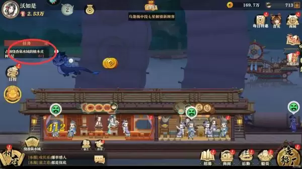 1、进入到神州千食舫后,按照主线任务操作