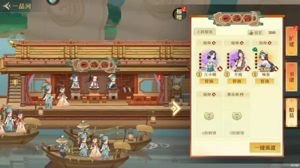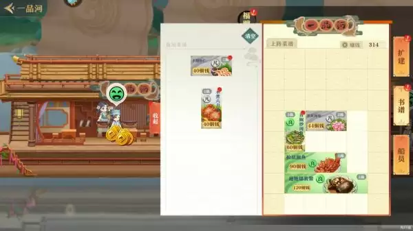 4、获得的奖励可以用于“一品河”扩建,这样可以提升技艺属性,同时还会增加玩家的收益