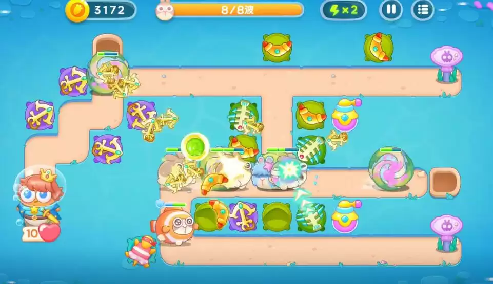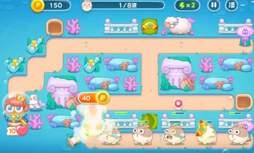 7、建造更多的防御塔,增加对兔子的输出,消灭所有的兔子完成本关。