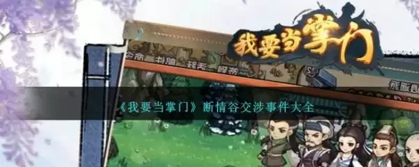 《我要当掌门》是一款武侠放置养成类手游。玩家在游戏中化身为一派掌门,执剑江湖,利用智慧与力量一步步壮大自己的门派,开创属于自己的江湖神话,游戏中各派交涉事件比较多,今天给大家带来了《我要当掌门》断情谷交涉事件攻略大全,不知道我要当掌门断情谷交涉事件是什么的朋友来看看吧!