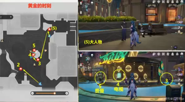 3)接着追踪任务先去下图3位置【旁听】后,再去4电视机位置【调查】一下,最后找5位置和【费曼】对话后开始【辩论】