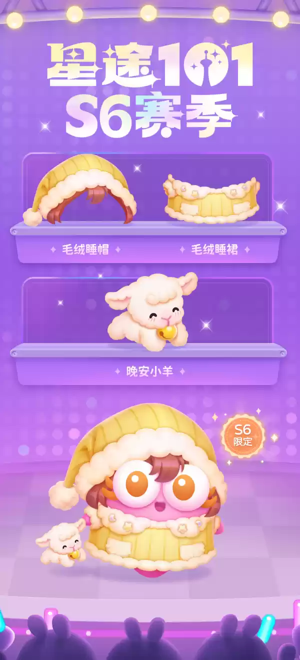 达到指定楼层,即可免费获取S6赛季限定阿秋服饰!淡黄色的「毛绒睡衣」,搭配同款软乎乎的「毛绒睡帽」,温暖又舒适。总是睡眠不佳?别担心!在「晚安小羊」的陪伴下,便能轻松进入甜蜜梦乡~