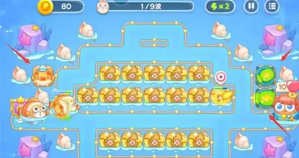 3.清理掉中间的宝箱,可以获得各种类型的防御塔,并且可以对其进行升级。