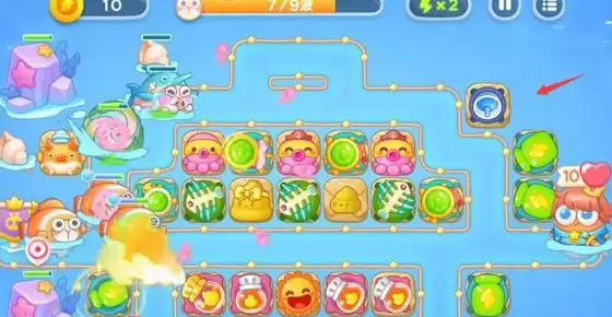 1.保卫萝卜4海的闺女80关先在左侧建造一个河豚对兔子进行攻击,右侧建造两个火球对障碍物进行清理。