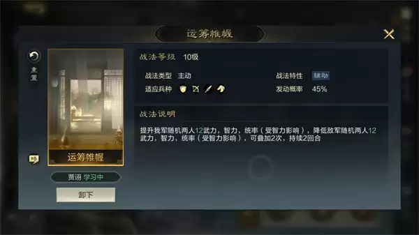 1、[贾诩]装备推荐:巧利天灾、运筹帷幄。