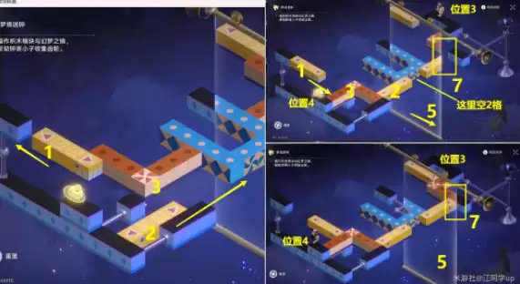 (3)接着开启【机关4】再将【地板2】移到【机关4】位置后,就可以去第5个【梦境迷钟】位置了。