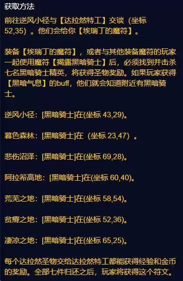 2、装备后找到七名黑暗骑士并且击杀就可以获得。