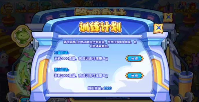 2.大家可以根据每个宠物说明情况进行力量训练或者耐力训练。力量训练需要消耗3000能量,训练消耗3分钟,完成可增重5kg;耐力训练需要消耗2000能量,训练同样3分钟,完成可减重5kg。训练成功后记得点击完成按钮,否则不计入当日训练。