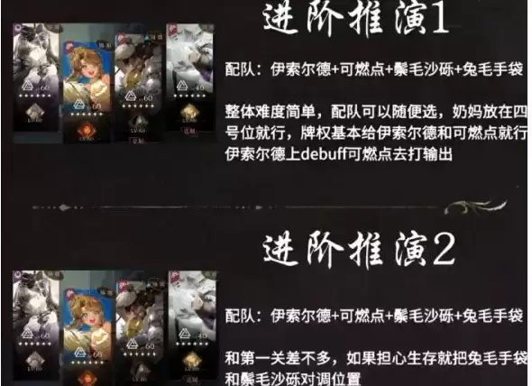 全体难度简略,配队能够随意选,奶妈放在四号位就行,牌权根本给伊索尔德和可燃点就行