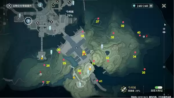 2、今州城 宝箱(26-41),声匣(6-8),飞猎手(1-2),如下图中的标点位置。