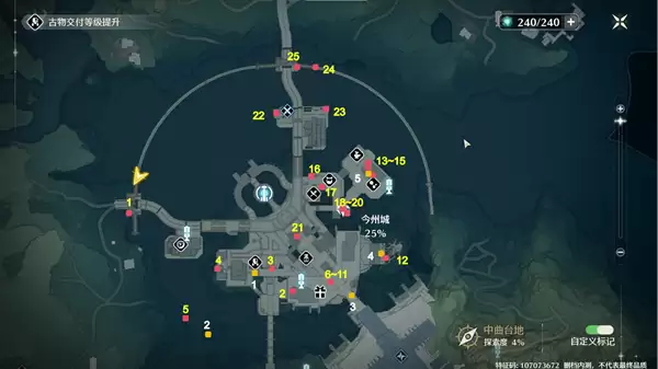 1、今州城 宝箱(1-25),声匣(1-5),如下图中的标点位置。