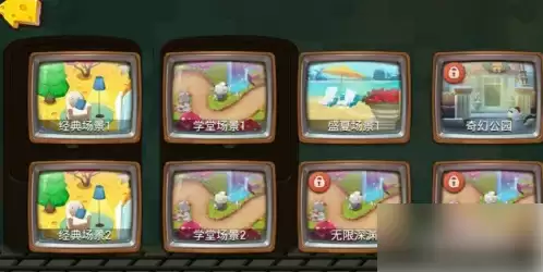 在卡通车道的图景中,点击*老鼠图案——自创关卡,在棕色图框中,需要解锁卡槽才可选择场景。