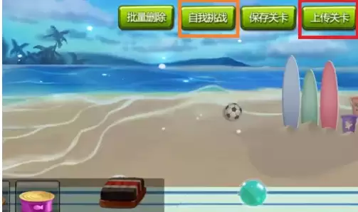 蓝色小球是不能碰到,可以跳上或翻过,但不可直面穿过,碰到就败了,接下来“上传关卡”,输入风趣的名称即创好。