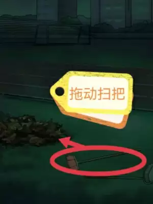 4、来到场景二点击地上的扫把将落叶清理掉后,点击出现的墓碑;
