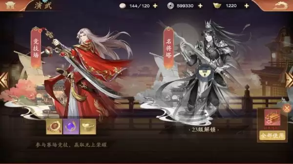 3、挑战演武副本参与赛场竞技,获胜后可以获得元宝以及道具奖励