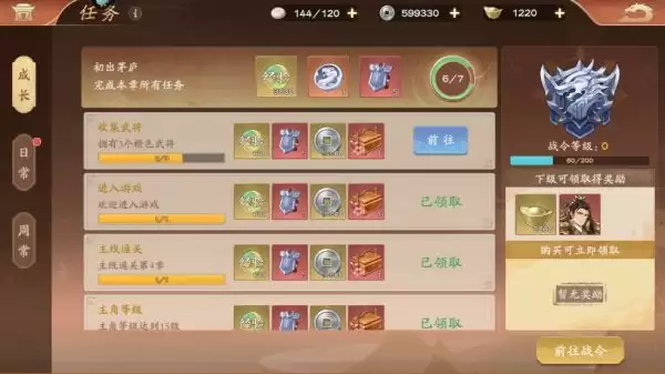 1、首先我们可以通过征战关卡挑战获得,每次完成指定的章节后可以一键领取宝箱奖励