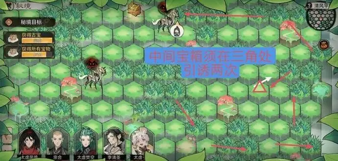 8、在下图的三角处进行引诱,拾取中间的宝箱,即可全清完成本关卡。