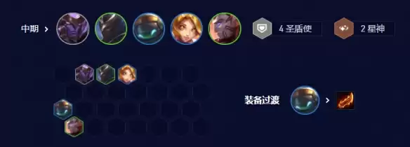 2-1升4,2-5升5,2阶段2盾或者4盾加巴德,4顿没有就上两个赵信或者两个洛;