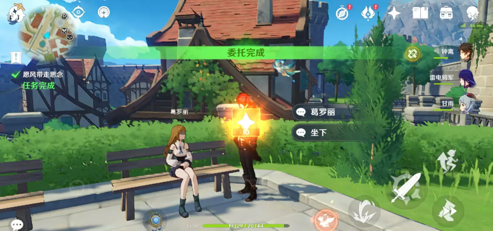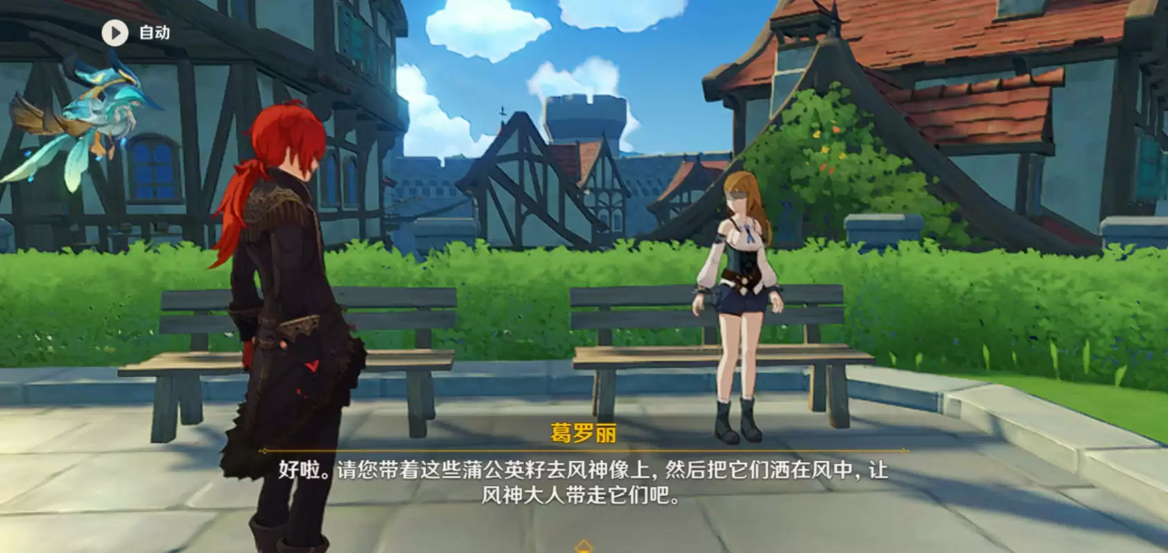 1、来到蒙德城,找到下图所示的npc进行对话。