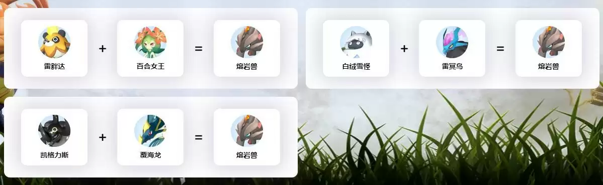 91白绒雪怪+97雷冥鸟=88熔岩兽