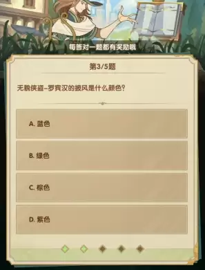 3、无貌侠盗-罗宾汉的披风是什么颜色?【绿色】