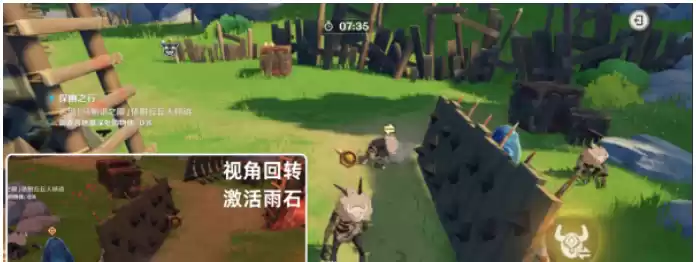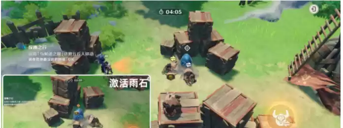 8.依附左边丘丘人并激活雨石(动作快些)。