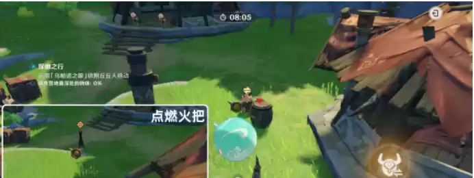 10.依附坐地上丘丘人并点燃火把。