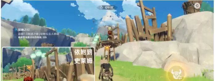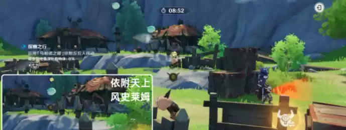 7.在丘丘人移动中视角右转依附到史莱姆上。