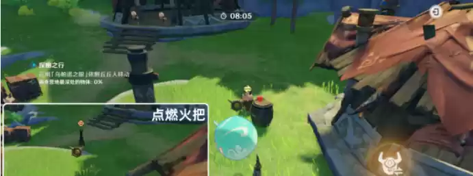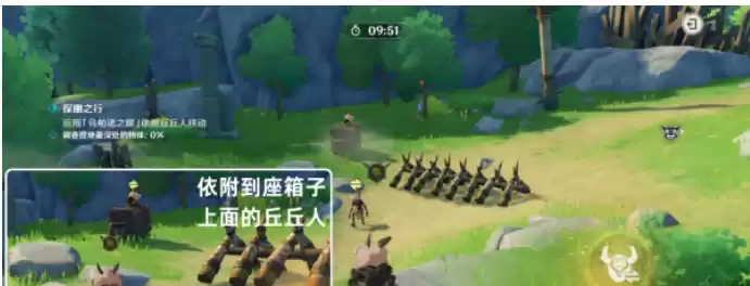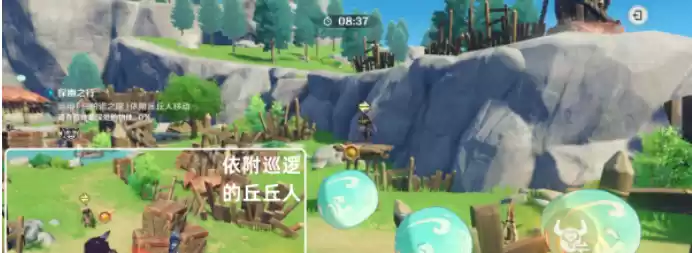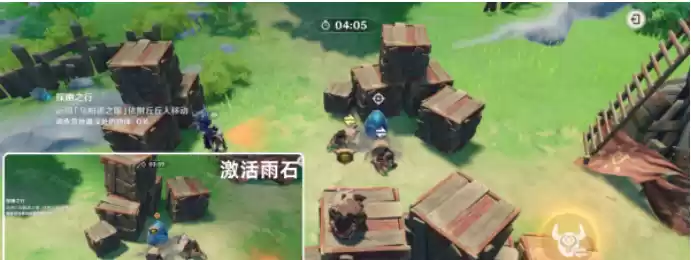 8.依附左边丘丘人并激活雨石(动作快些)。