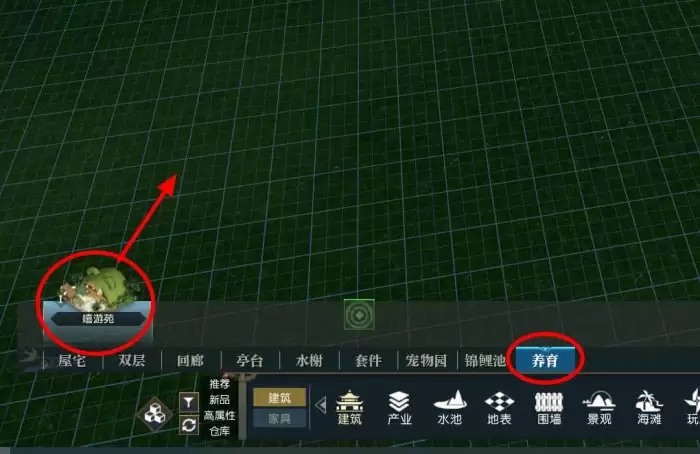 ①点击庄园建造-嬉游园,摆放在庄园内,宝宝会默认放在床上。