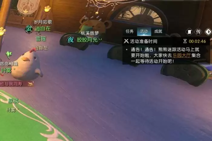 ③活动技巧:进入活动大厅后,一定要与与其他玩家组队,最好开团。这样30个人分开去找,谁先找到在队伍里说坐标,其他人输入坐标就可以自动寻路过去了。