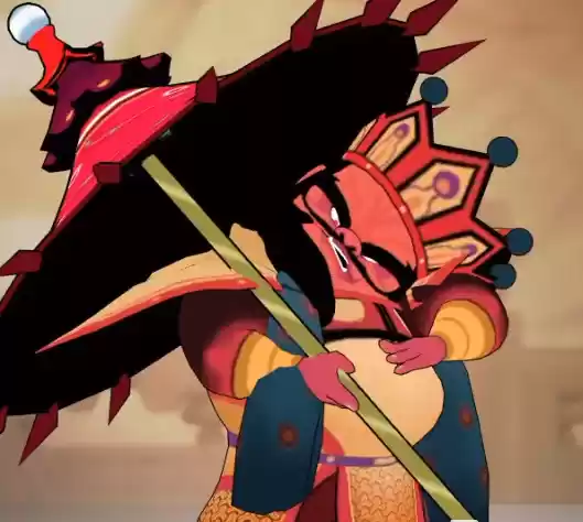 之后是二技能,他的二技能在发动之后会扔出宝剑,然后让宝剑变大,在变大后他会站在宝剑之上,再操纵宝剑进行冲刺,这是一个直线冲刺,在期间他会对沿途所有敌人带来伤害,并且击晕这些敌人,这个伤害为攻击力的110%,眩晕时间为1秒。除此之外,在冲刺过程中他自身还会获得一个霸体效果,在这个霸体效果下,没有敌人可以打断他的施法。