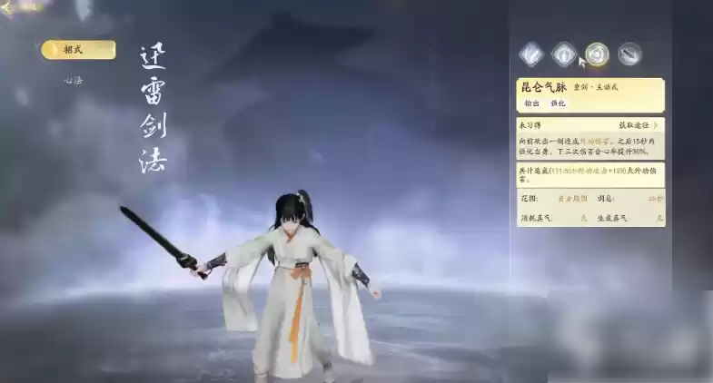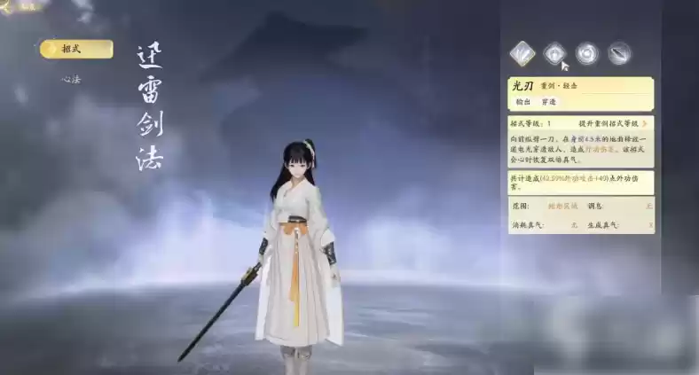 迅雷剑法的基础技能光刃,是个远距离输出技能可以造成外攻伤害;基础技能跃空劈,这是个跳起的技能,在落地时伴有迅雷剑气可以造成外功伤害;主动技能昆仑气脉,会有外攻伤害之外还能强化自身的会心率;绝技威临宇宙,除了有远距离的外公伤害之外还会在20秒内触发落泪造成额外的外功伤害。
