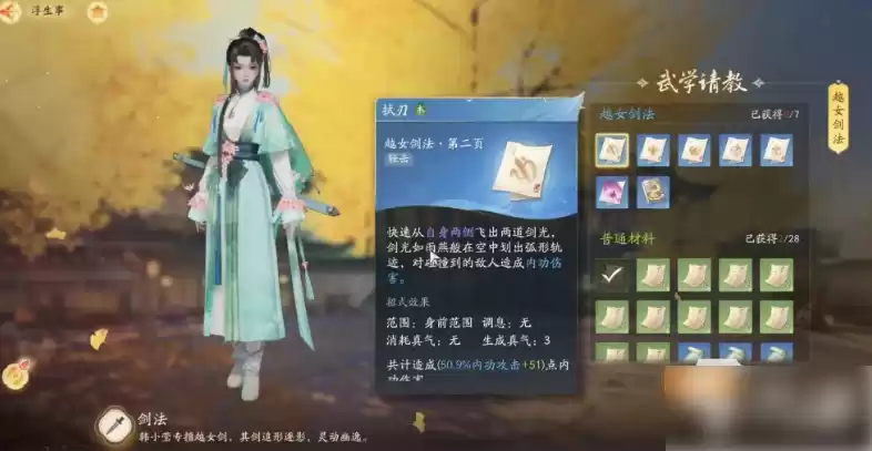 在重剑的技能上除了可以通过武学秘籍进行学习之外,也能通过向一些重要的角色请教来学习,比如说欧阳修和杨康等。通过浮生事图鉴功能可以了解到每个角色能传授的招式技能。通过和他们建立好感度的方式来向他们建立联系,达到一定好感度的时候就能利用拜帖来进行请教了,好感度越高能学习到的武学技能也就越多,当刷完所有的好高度基本上也能学完角色的全部剑招和招式。