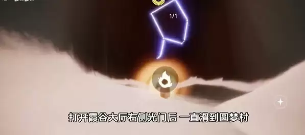 2、打开霞谷大厅右侧光门后 一直滑到圆梦村。