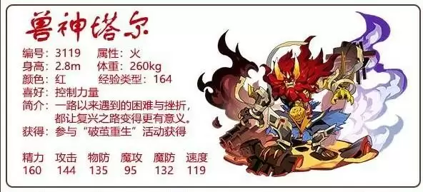 3、兽王塔尔破茧重生。种族值方面还算不错,并且带来了两个新的血际。
