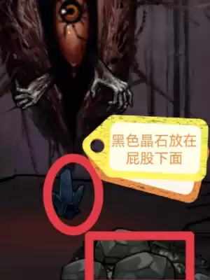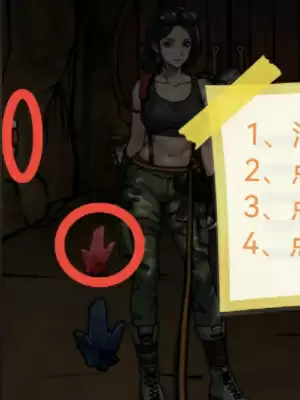 3、进入矿洞后我们点击墙上的纸条了解到游戏规则,接着点击地上的红色水晶;