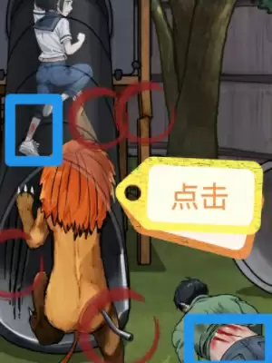 1、进入游戏我们首先找出危险的地方,分别是与狮子搏斗、凶狠的狮子、狮口血吼、受伤的爸爸、害怕的女儿、爸爸的脖子。
