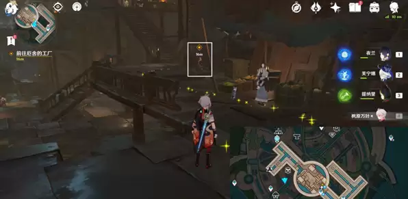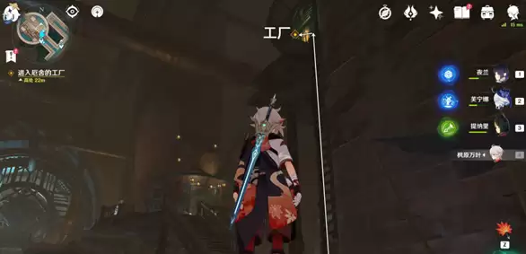 往地图的北方向头顶看,爬楼梯进入工厂,进入秘境。