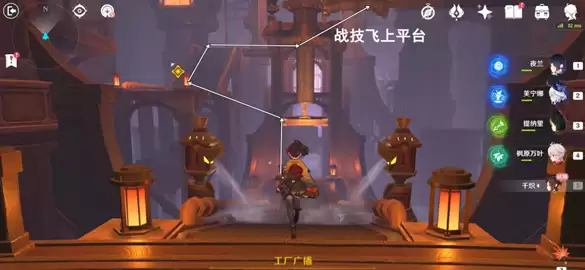 利用千织战技,升降平台,前往仓库顶部。