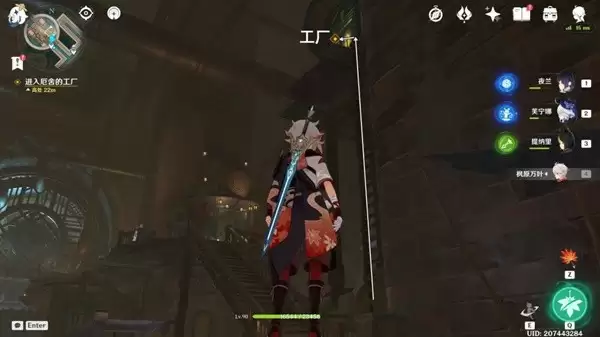 往地图的北方向头顶看,爬楼梯进入工厂,进入秘境