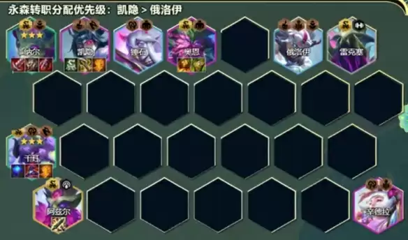 3-2升6人口,先D出两星干珏纳尔,之后存钱慢D三星。无永森转需要在6人口D到奥恩才能开4永森。