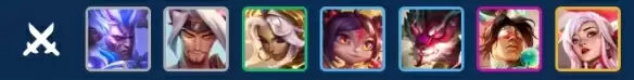 诺手德莱厄斯(1)+亚索(1)+奇亚娜(2)+小炮(3)+狗熊沃利贝尔(3)+盲僧(4)+刀妹艾瑞莉娅(5)