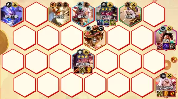 1、阵容组成:德莱厄斯、琪亚娜、崔丝塔娜、沃利贝尔、戴安娜、李青、艾瑞莉娅、洛、悟空