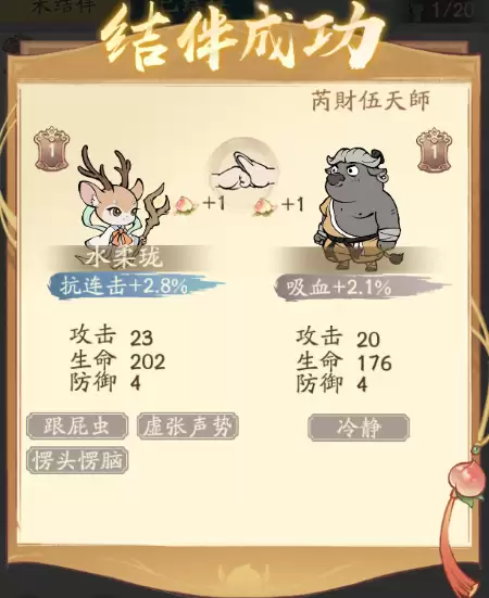 任命后,主角将可获得任命弟子对应的战斗属性和词条加成。任命已结伴的弟子更可一同获得对方弟子的基础属性加成!