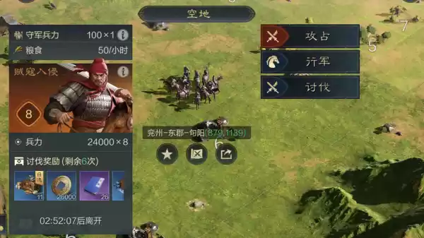 5、讨伐贼寇损失的兵力,将会以粮食的形式返还,返还比例为90%。