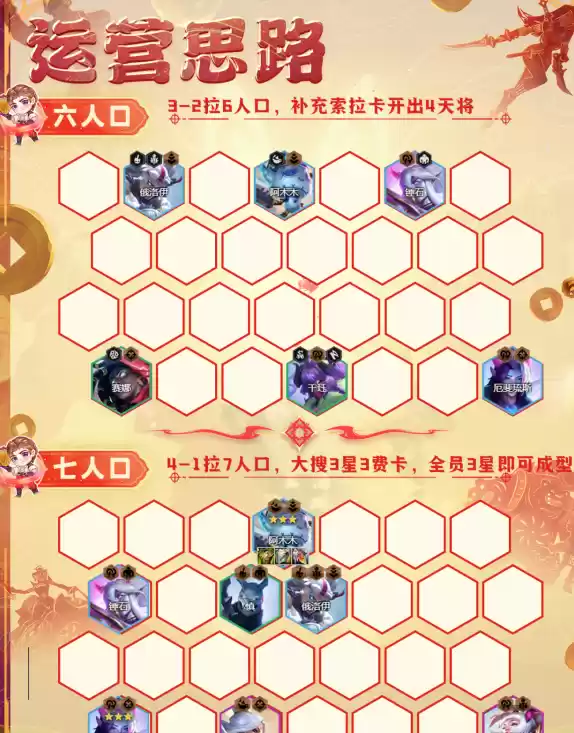 2.阵容羁绊:3灵魂莲华2幽魂2护卫2擎天卫2法师2狙神2青花瓷