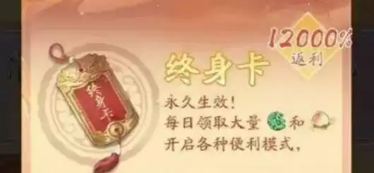 终身卡售价198元,一天可以领取100绑玉和100个桃,享有7种权益,终身卡购买后永久生效。